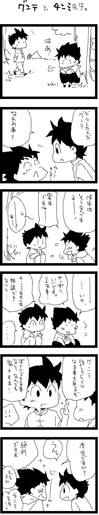 ちょいとホモくさい漫画なので気をつけてください。しかし私の描く漫画って、基本ちょいホモやね。
