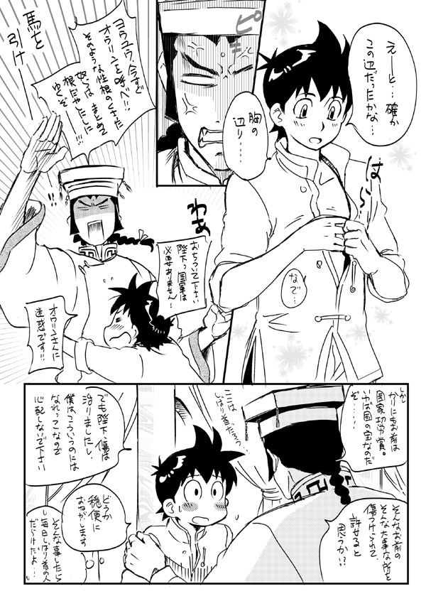 そんな襲撃を受けて大林寺の皆さまを心配させてもけろっとしてるチンミですが、(罪な人だ・・・)更に皇帝を絡ませてみたらどうなるか、描いてみようと思い立ちました。今回の事件後すぐに皇帝に会いに都へ行った設定です。